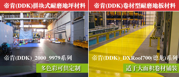 工廠地坪由于在工業勞動復雜環境中車輛以及載重等因素,所以傳統環氧車間地坪特別容易磨損,水泥地面也容易起殼起砂,這些廠房地坪“牛皮蘚”式的問題困擾著工廠管理者!帝肯(DDK)出品新型拼接式工廠地坪,很好地解決了這一問題。這一系列DDK彩色耐磨地坪材料針對廠房地面防起砂處理、抗壓、耐磨、耐油、耐化學性等多方面特性需求的運用而研發的工業地面材料,對廠房地坪施工做出了更優化的解決方